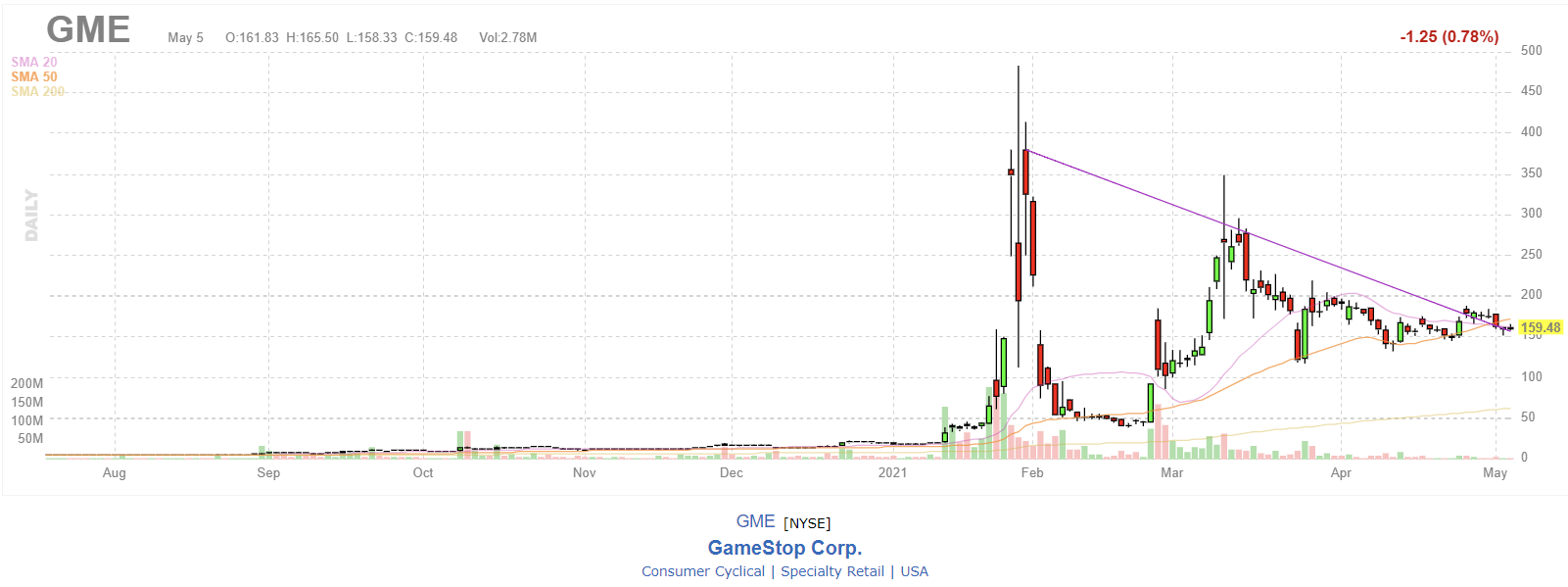 GameStop Corp. (NYSE : GME)는 비디오 게임, 가전제품 및 게임 상품을 판매하는 텍사스 소재 소매 업체입니다. 1984 년에 설립되었으며 현재 구매할 수 있는 최고의 Robinhood 주식 10 개 목록에서 5 위를 차지했습니다. 이 회사는 전 세계적으로 4,800 개 이상의 매장을 소유 및 운영하며 전자 상거래 플랫폼도 운영하고 있습니다. 52 주간 GameStop 주식의 가격 범위는 $ 3- $ 483 사이로, 소매 투자자들이 소셜 미디어 조정을 통해 회사의 지분을 구매하여 주가를 올렸기 때문에 올해 초 최고치를 기록했습니다.