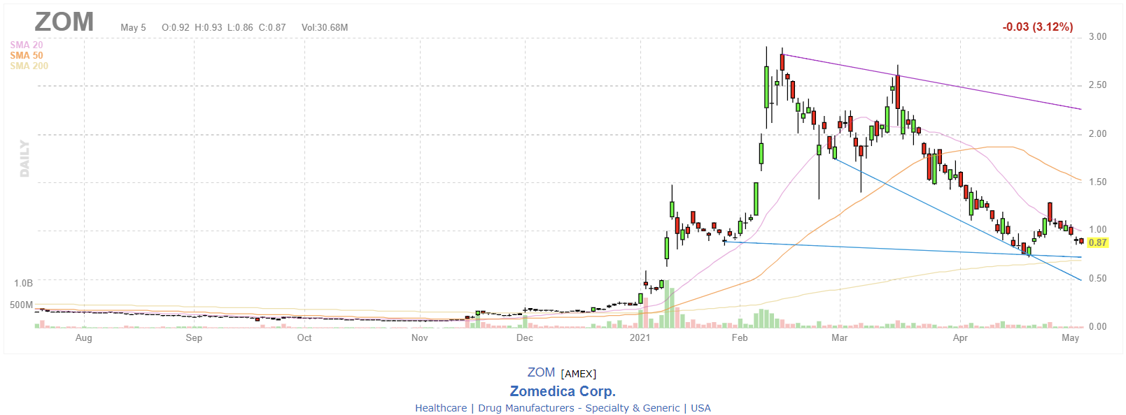 Zomedica Corp. (NYSE : ZOM)은 2013 년에 설립된 미시간 기반 제약 회사입니다. 현재 매입할 수 있는 최고의 Robinhood 주식 10 개 목록에서 6 위를 차지했습니다. 이 회사는 반려 동물용 의약품 개발 및 마케팅에 주력하고 있습니다. 소형견의 설사 치료제, 고양이의 갑상선 기능 항진증을 표적으로 하는 포뮬러 , 동물의 암 검출 용 제품 등 많은 약물이 파이프 라인에 포함되어 있습니다. Zomedica의 52 주 가격대는 $ 0.06- $ 2 사이에 있으며, 작년 유행병이 절정에 달했을 때 인상적인 성능을 보였습니다.