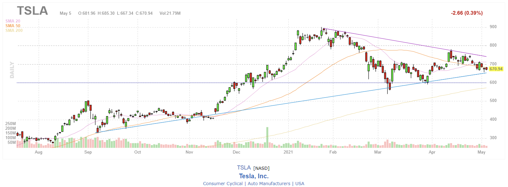 Tesla, Inc. (NASDAQ : TSLA)는 캘리포니아에 기반을 둔 전기 자동차 및 에너지 배터리 제조업체입니다. 2003 년에 설립되었으며 현재 구매할 수 있는 최고의 Robinhood 주식 10 개 목록에서 3 위를 차지했습니다. Tesla 주식은 회사의 자율 주행 기능에 대한 판매 수치와 정부 문의가 주가를 불안정하게 유지하기 때문에 고위험, 고수익 투자입니다. 회사 주식의 52 주 가격 범위는 $ 150- $ 900 사이입니다. Tesla는 다른 여러 기술 회사를 운영하는 억만장자 Elon Musk가 소유하고 있습니다.