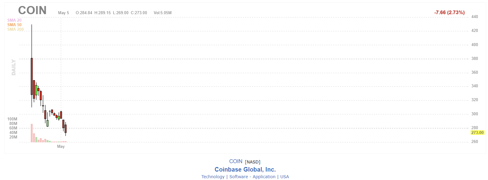 코인베이스 Coinbase Global, Inc. (NASDAQ : COIN), 암호 화폐 거래소는 지난달에 상장되었을 때 860 억 달러가 넘었습니다. 찰리 멍거를 비롯한 여러 베테랑 투자자들이 암호 화폐 주식이 과대 평가되었다고 반복해서 경고했지만 시장 대부분이 그들의 조언에 주의를 기울이지 않기로 결정한 것 같습니다. Coinbase Global, Inc. (NASDAQ : COIN)의 주가는 한때 약속했던 재물로의 빠른 길을 제공하지 않아 대다수의 젊은 투자자들이 주식에 대한 인내심을 잃었 기 때문에 그 이후로 거의 절반 가까이 떨어졌습니다.