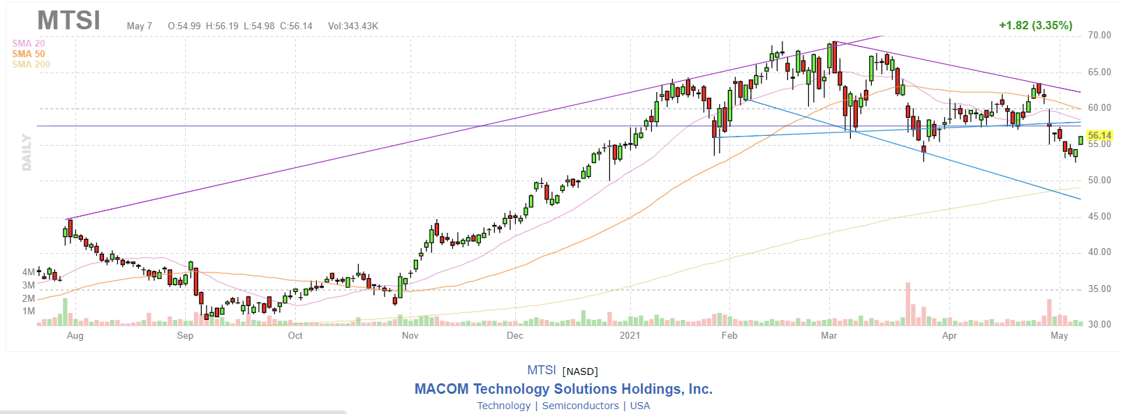 MTSI는 3 개월 만에 13 % 하락하여 매력적인 플레이를 보여주었습니다. MTSI는 위성 네트워크 및 광 무선 시스템을 포함한 애플리케이션을 위한 전력 아날로그 반도체 설루션 및 관련 구성 요소를 제공합니다. MTSI는 또한 레이저, 변조기 드라이버 및 실리콘 포토닉스를 만듭니다.