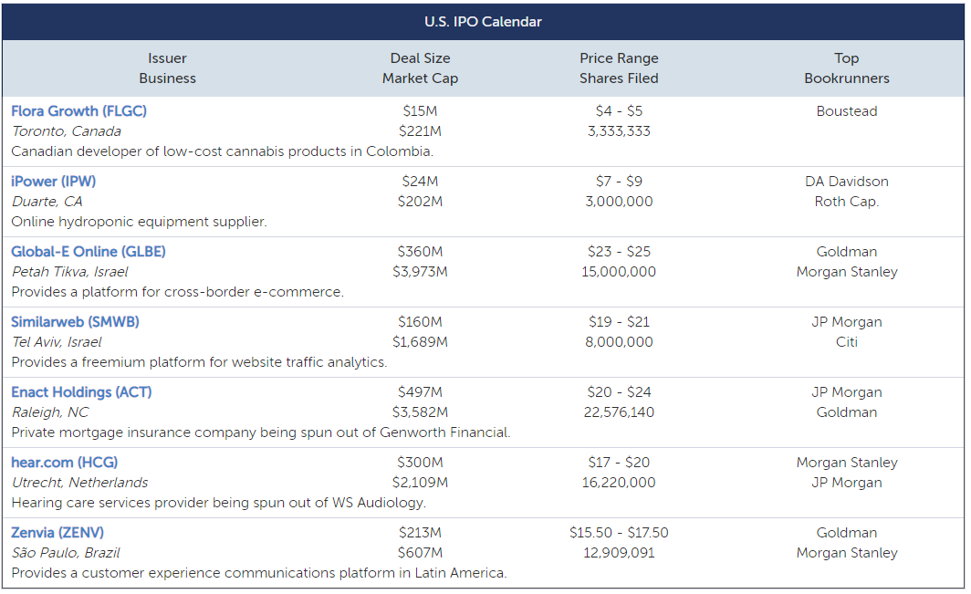 금주의 최대 거래 인 Enact Holdings ( ACT )는 시가 총액 36 억 달러에 4 억 9,700만 달러를 모금할 계획입니다. Genworth Financial에서 분사된 Enact는 미국의 선도적인 민간 모기지 보험 회사로 2020 년 시장 점유율 17 %를 기록했습니다. 이 회사는 COVID-19가 보유하고 있지만 연중 신규 보험이 60 % 증가했습니다. 더 높은 연체와 손실이 발생했습니다.