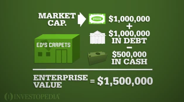 기업 가치는 회사의 시가 총액뿐만 아니라 단기 및 장기 부채뿐만 아니라 회사 대차 대조표의 현금도 계산에 포함합니다.