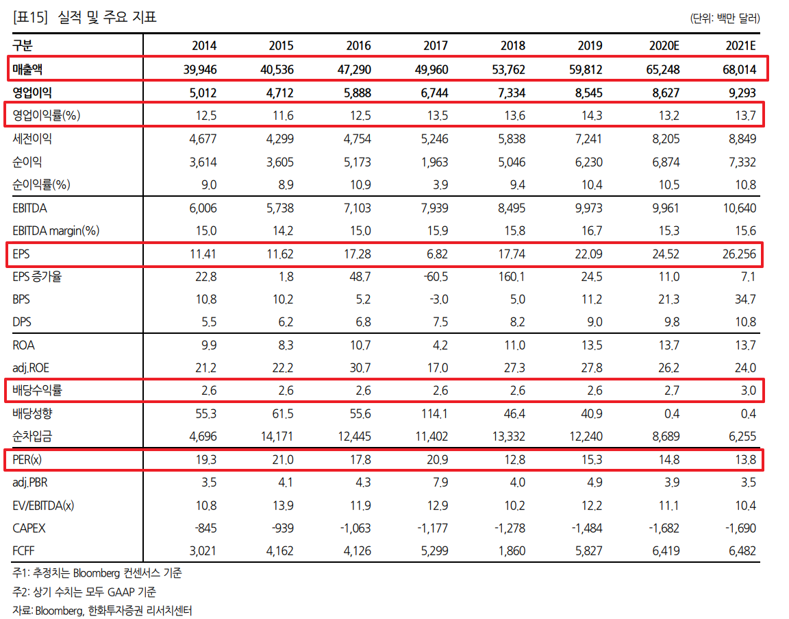 동사는 ‘20년 3분기 실적 발표와 함께 올해와 내년 실적 가이던스를 제시했다. ‘20년 매출액 652억 달러(YoY +9%), 영업이익률 10.9%, ‘21 년 매출액 670억 달러(YoY +3%), 영업이익률 10.9~11.1% 수준이 될 것으로 전망했다.