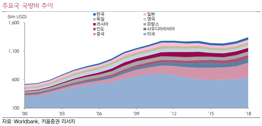 - 방위비 지출 증가 시 수혜 기대