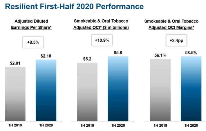 7 월 28 일 발표한 Altria의 2020 년 2 분기 실적에 따르면, 50 억 6 천만 달러의 수익은 전년 대비 2.5 % 감소하여 예상보다 2,000 만 달러를 약간 상회했다. Altria 의 핵심 펀더멘털은 미국 경제에 중대한 영향을 미쳤던 코로나 바이러스 전염병에도 불구하고 2020 년 상반기 동안 비교적 잘 유지되었다.