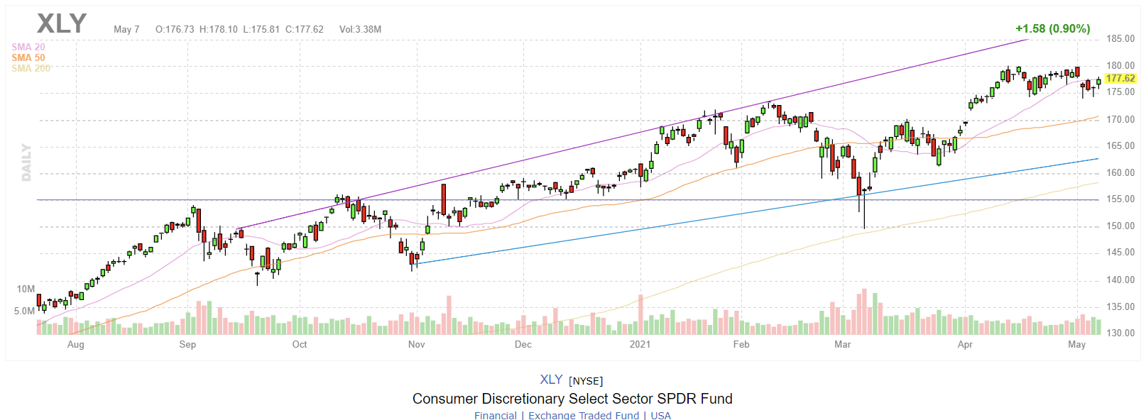 소비자 임의 선택 부문 SPDR 펀드 (XLY)에는 S & P 500의 소비자 임의 주식이 포함됩니다. 2020 년 8 월 기준 상위 보유량은 다음과 같습니다.